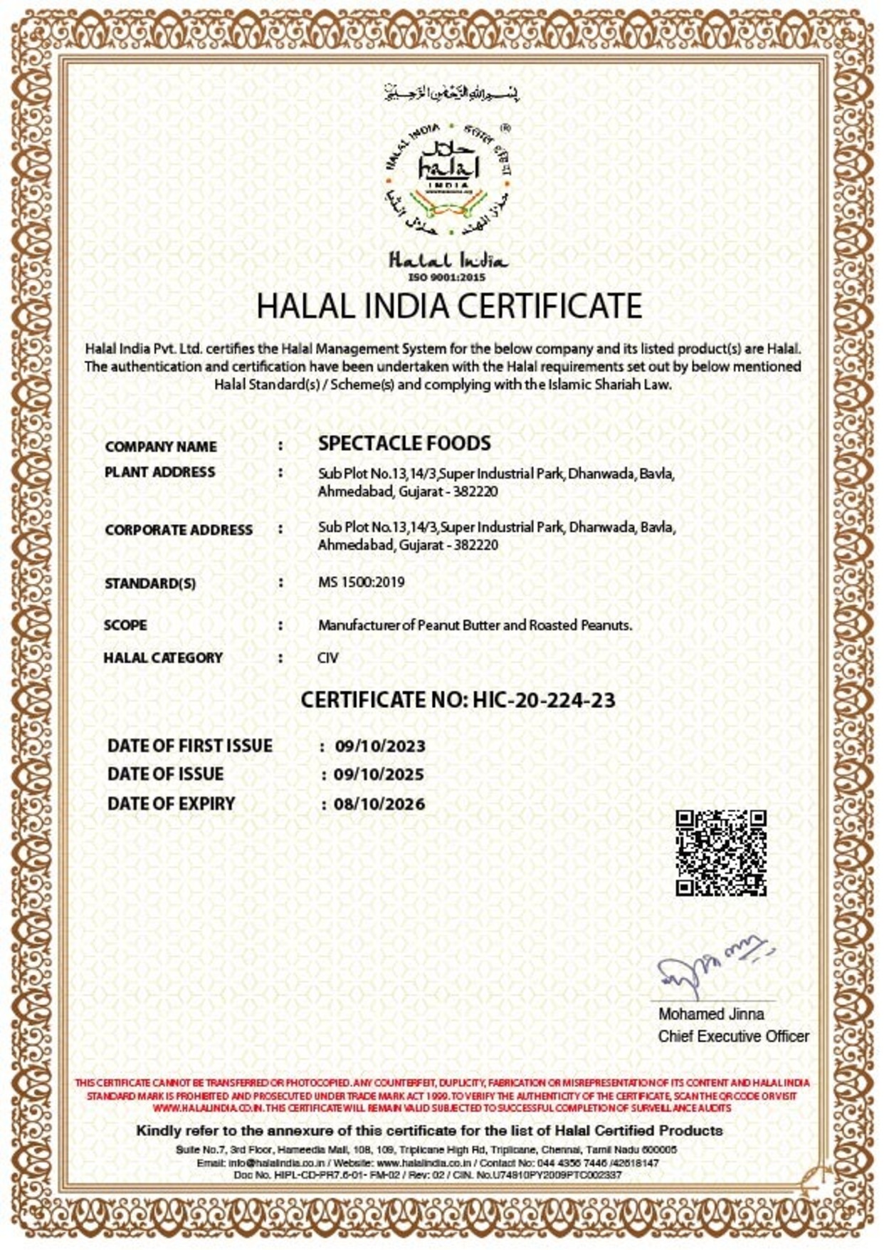 At Spectacle foods, we pride ourselves on adhering to the highest standards of quality and safety in our manufacturing processes. Our commitment to excellence is reflected in our comprehensive range of certifications, which demonstrate our dedication to delivering safe, high-quality products that meet both national and international standards.