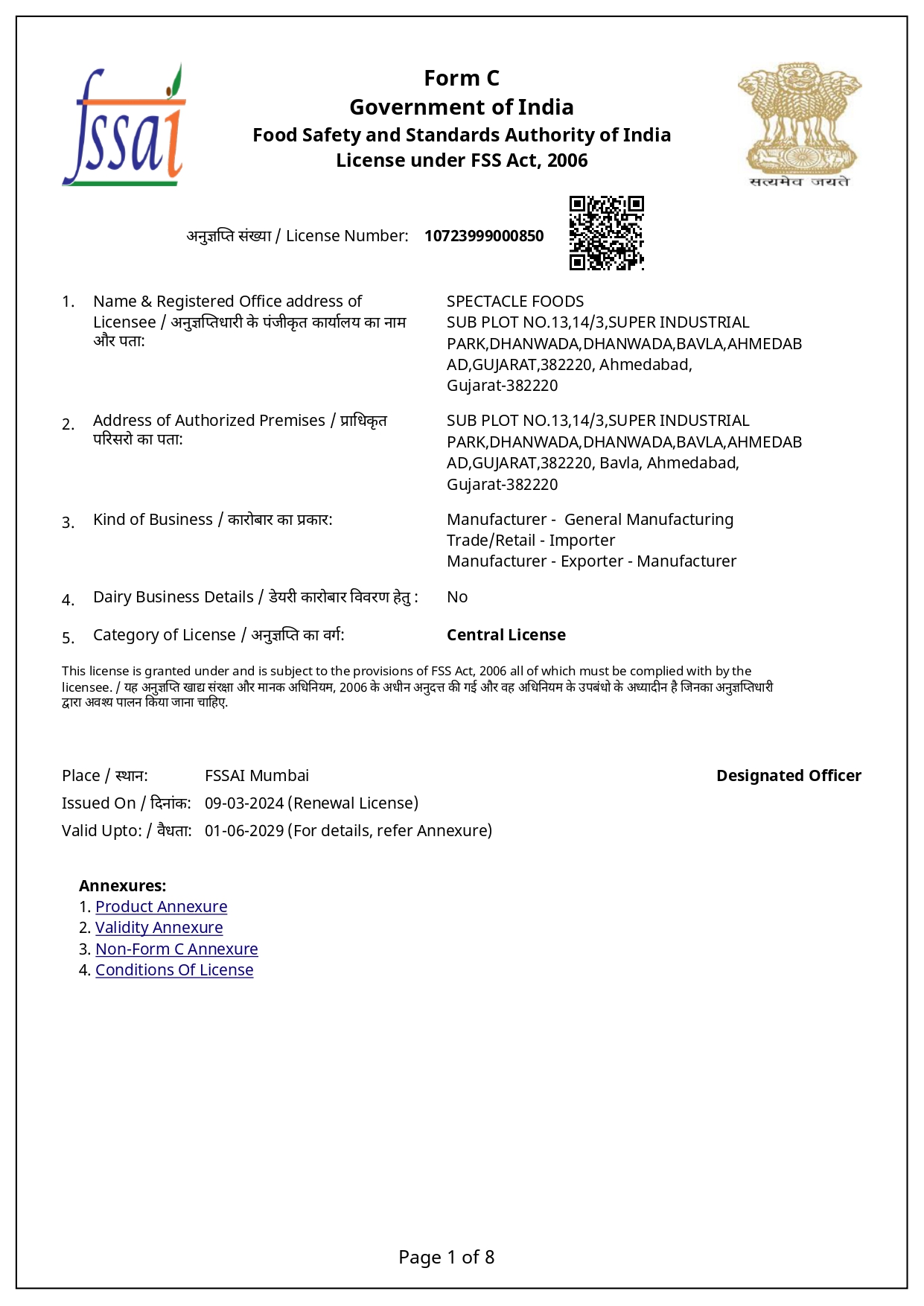 Our FSSAI certification ensures that our food products comply with the safety and quality standards set by the authority, guaranteeing the utmost safety for consumers.